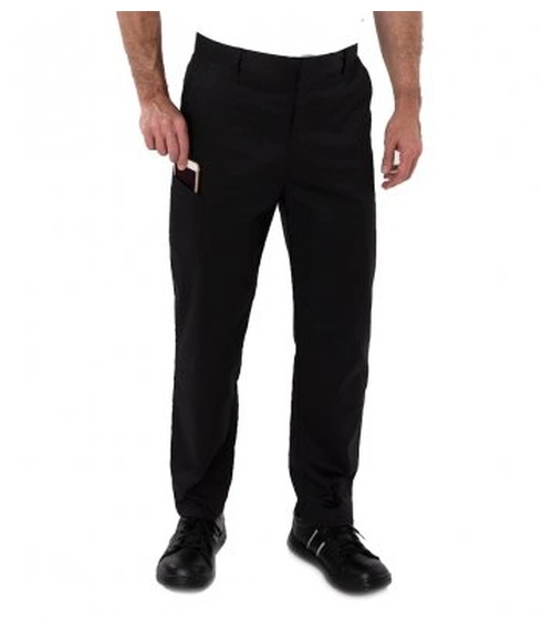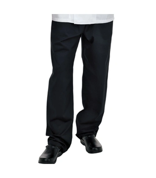 DC62A Denny’s fully elasticated, black, long life chef trousers