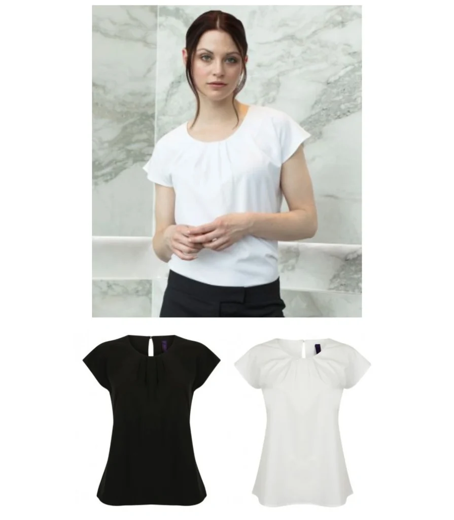 H597 Henbury Ladies Pleat Front Short Sleeve Shirt