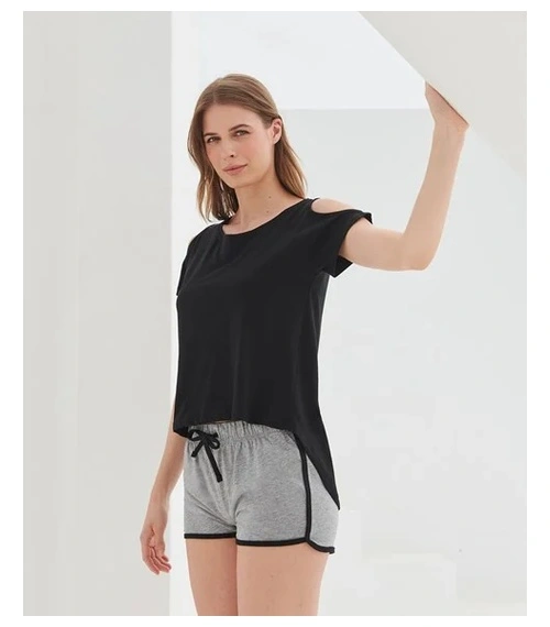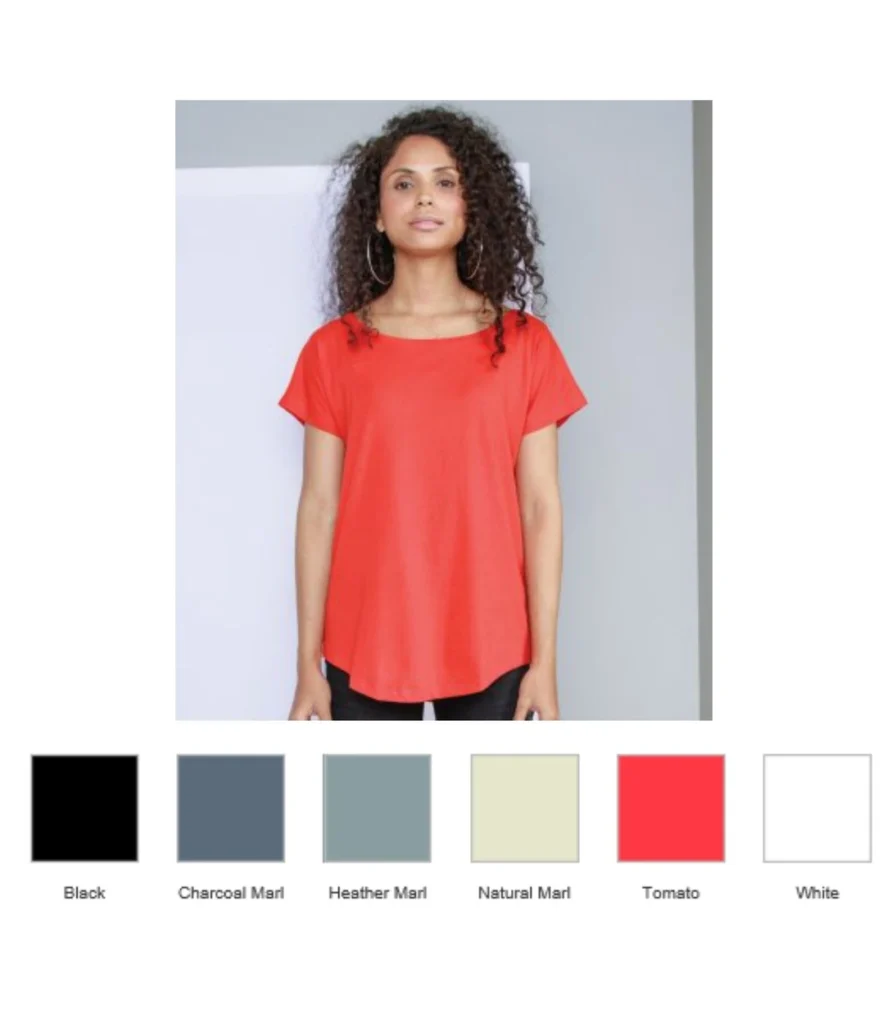 SK233 Skinnifit Ladies Drop tail Top tee with shoulder detail