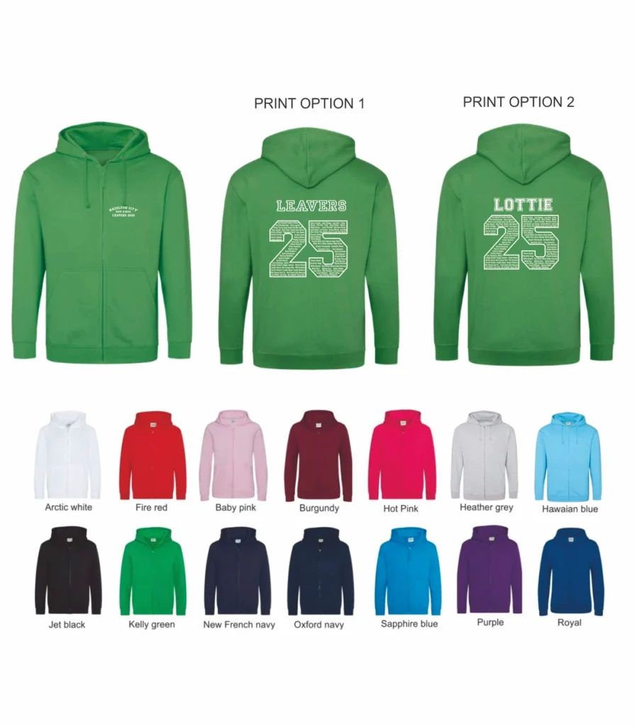 School Leavers JH050 Style 1 Senior Zip Hood From £19.99 +vat