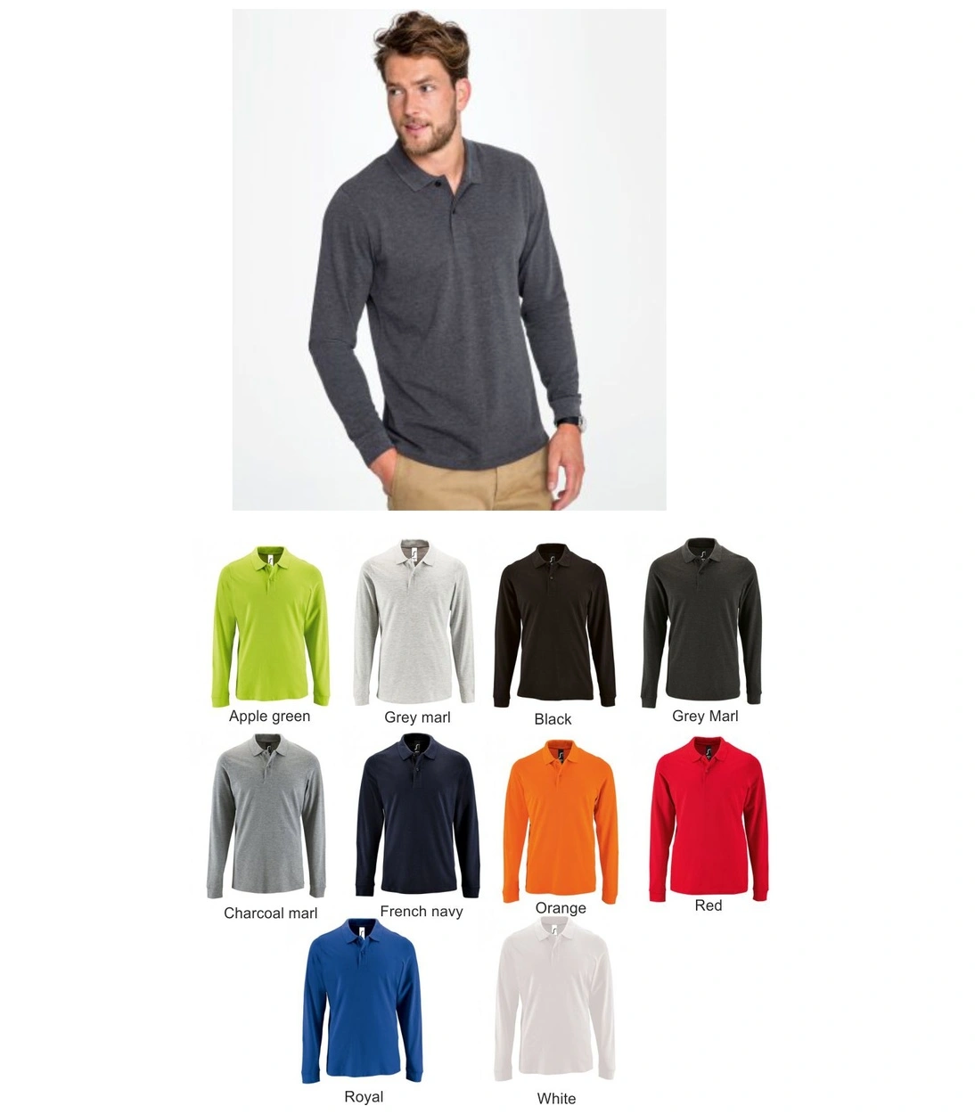 - Colours black, white, French navy, royal, apple green, charcoal marl, grey marl, ash, red, orange