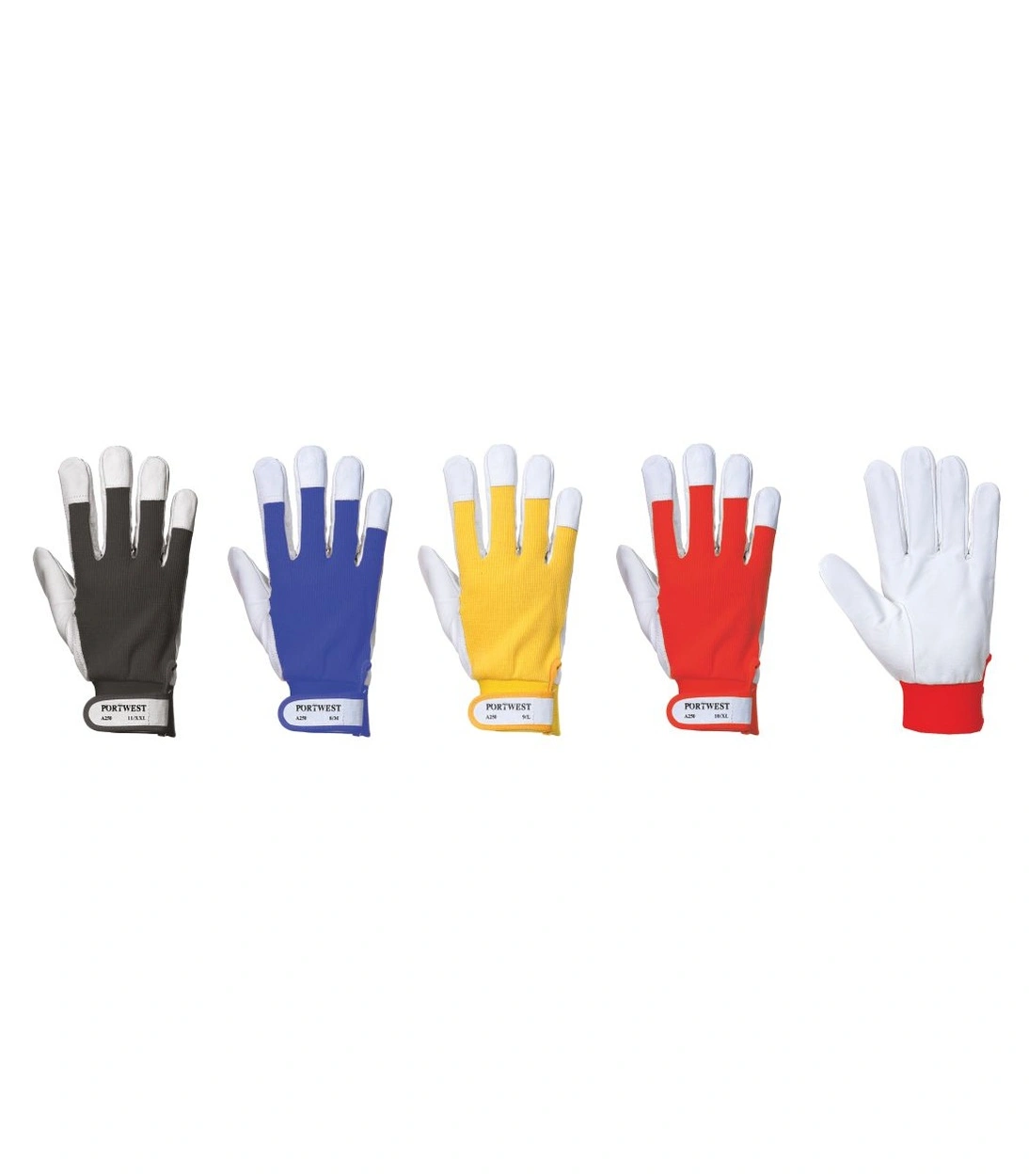 Durable pig grain leather glove with velcro fastening, cotton back and reinforced fingertips. Suitable for light industrial applications.