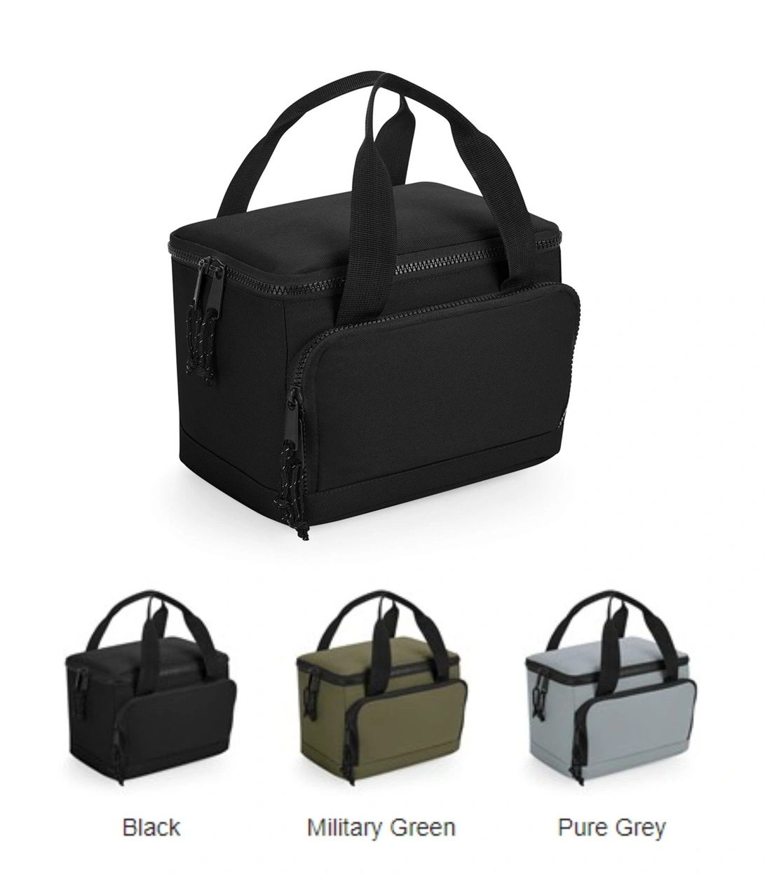 100% Recycled 600D polyester. PVC-free. PEVA lining – BPA-free. Food-safe, fully insulated main compartment. Zipped main compartment. Zipped front pocket. Wipe-clean interior. Internal slip pocket. Twin carry handles. Cord zip pulls with reflective detailing. TearAway label for easy rebranding.