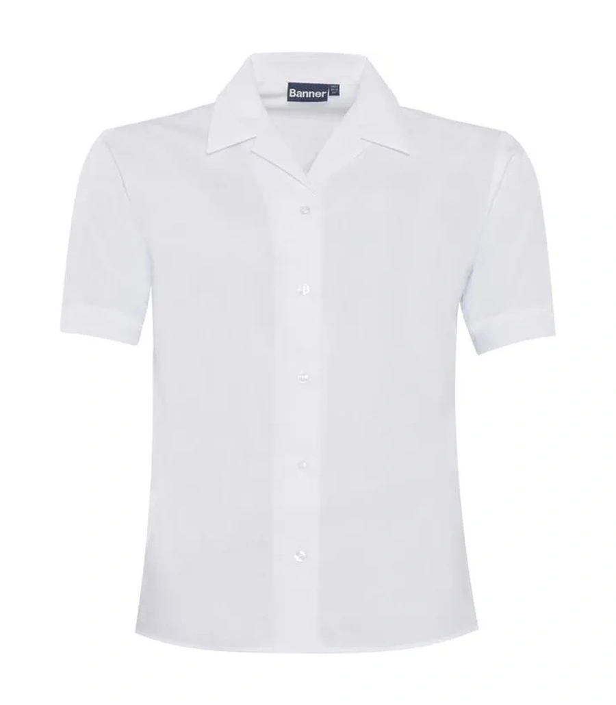 Revere collar, Sleeve vents, Shaped hem, Semi-fitted, Short sleeve, Non-iron fabric