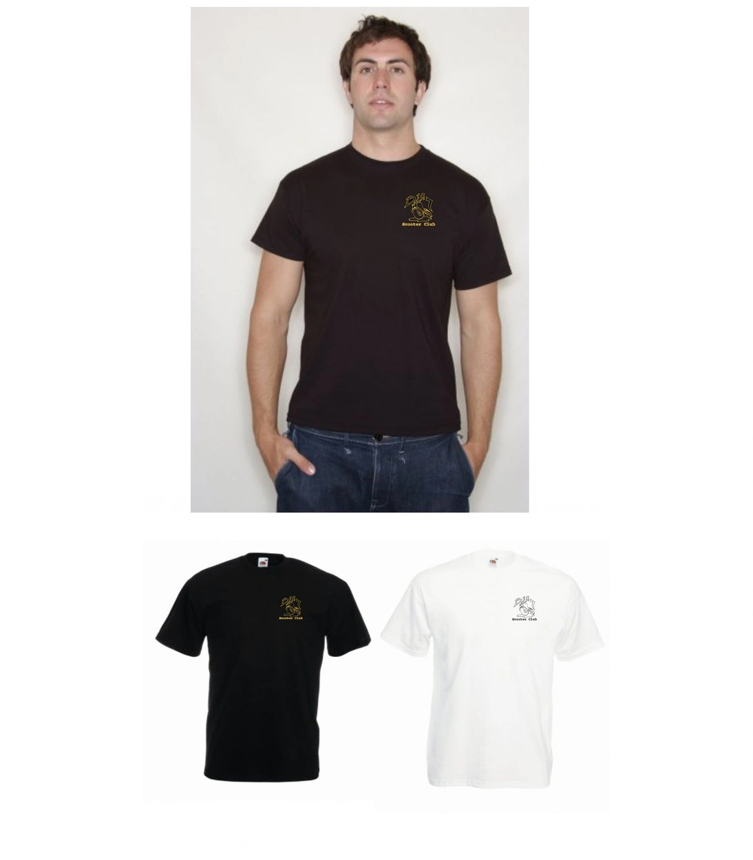 Uneek UC302 tee shirt in black embroidered with Big 7 logo on left hand breast in yellow/gold or white tee shirt with logo embroidered in black.
