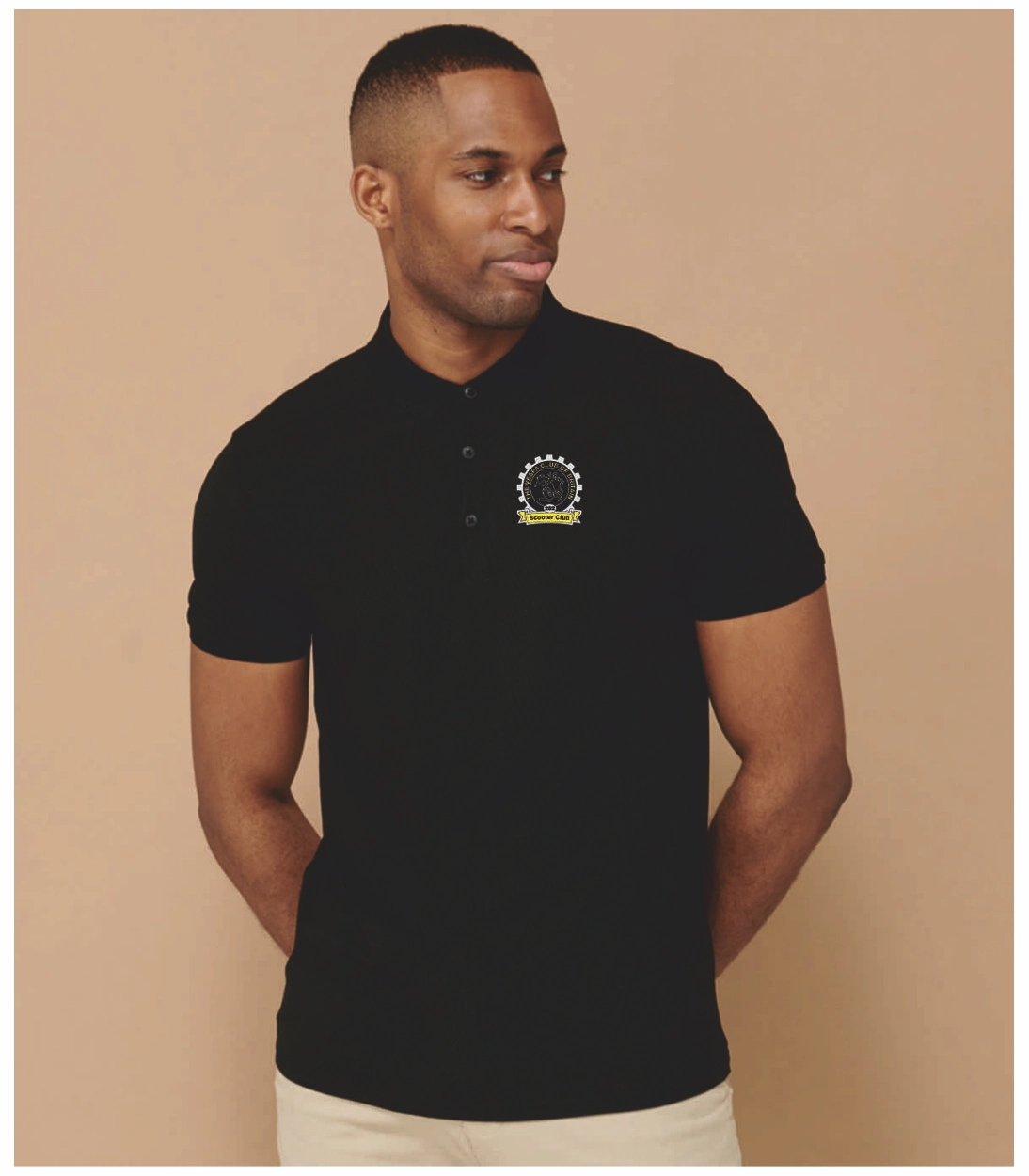 Black Uneek UC101 polo shirt embroidered with Big 7 Vespa Club logo on left hand breast  – optional large printed logo on back (extra £3.85 + vat) as per prints on tee shirts