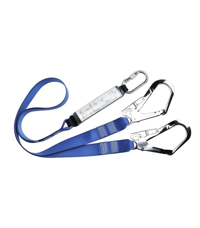 Features: • CE certified Description: Double ended lanyard featuring high quality webbing, hooks, carabiner and shock absorber. It is 180cm long including connectors.