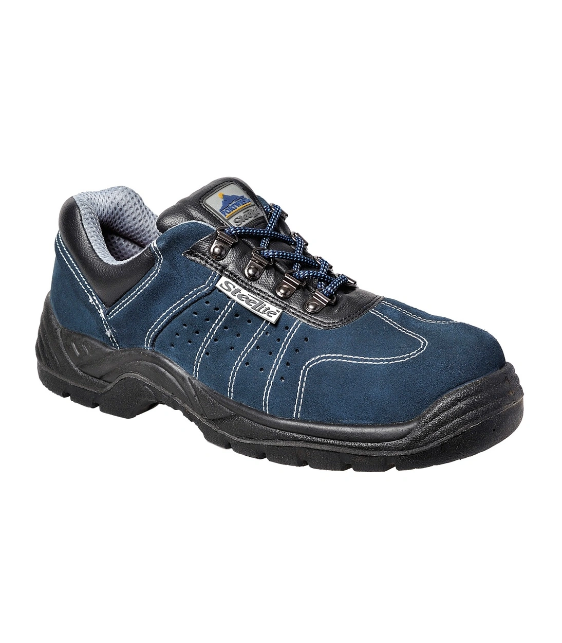 Hiker style S1P trainer with perforated upper and a special breathable lining for those working in warm conditions where breathability and comfort is a must. Colour blue, upper cow suede leather, PU/PU outsole in Euro sizes 36 – 48 UK sizes 3 – 13