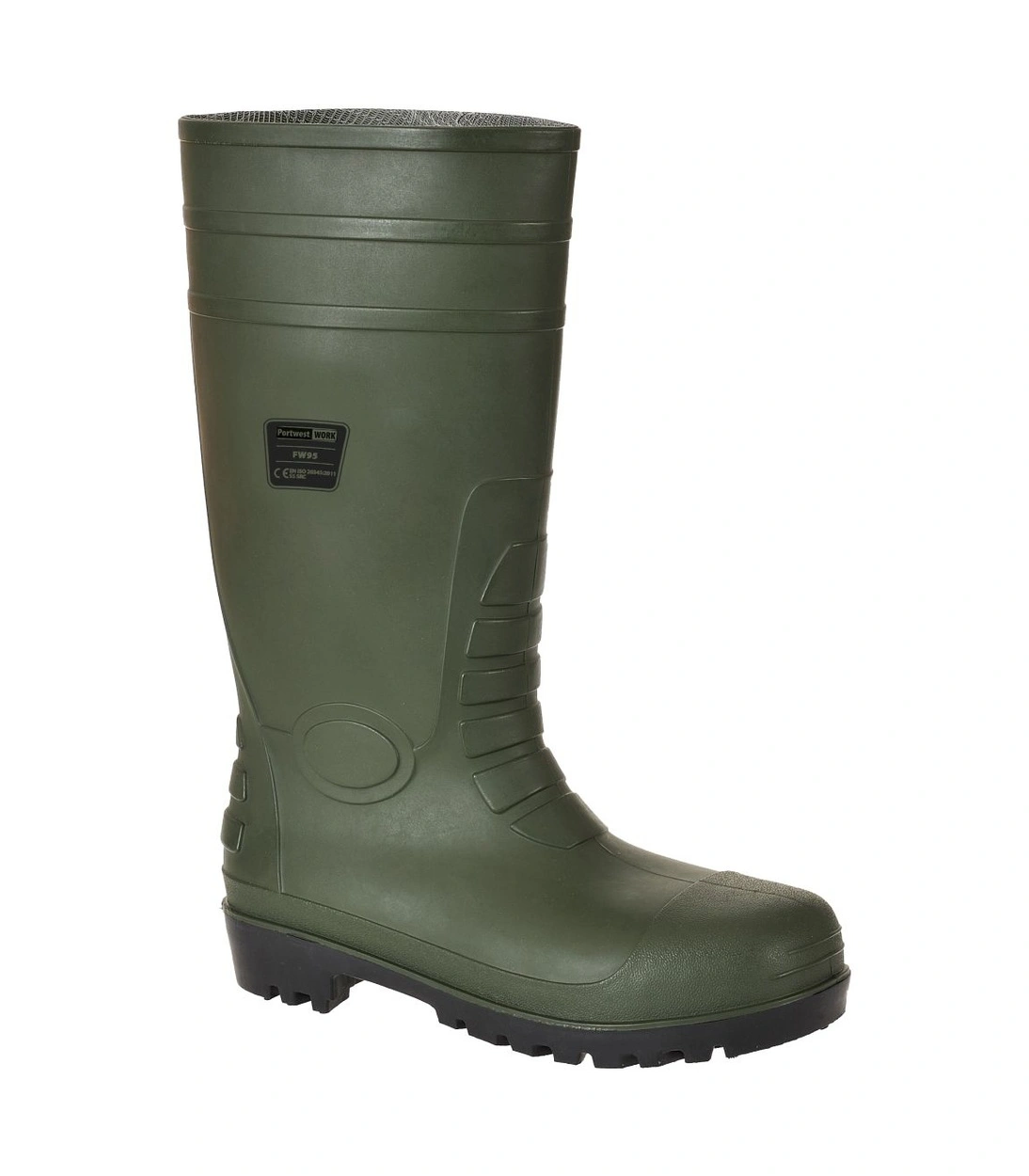 Our new range of SteeliteSafety Wellingtons are manufactured from PVC/Nitrile to give a seamless watertight construction. 200 joule steel toe cap, slip resistant and anti-static, are just some of the key features. Washable nylon lining and kick off spurs make these wellingtons safe for use in a wide range of environments. Colours: FW84 (White) FW94( Black, Green) Sizes: Black or green Euro: 37-47 Imperial: 4-12 (Full sizes only) Upper: PVC & Nitrile Sole: PVC & Nitrile