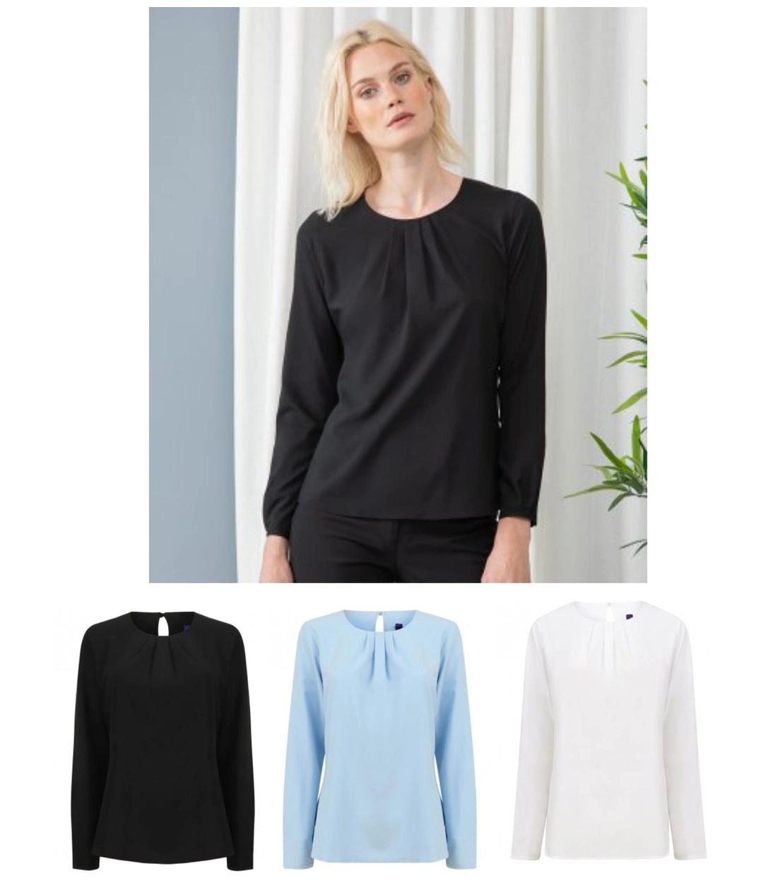 H598 Henbury Ladies Pleat Front Long Sleeve Blouse