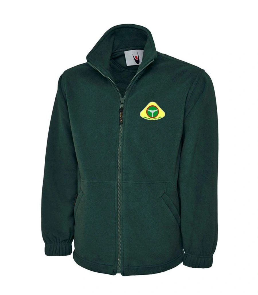 Uneek UC601/ UC602 380gsm anti pill fabric, with two zip pockets, available in 1/2 zip slipover or full zip jacket in sizes XS, Small, Medium, Large, XL, 2XL and  3XL in bottle green, black or navy with Historic Lotus Club logo embroidered on left hand breast