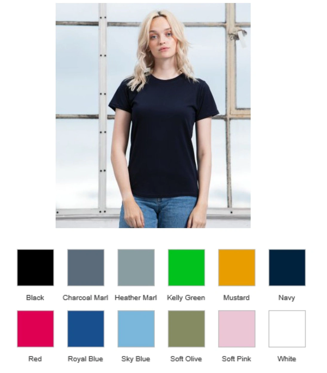 - Colours black, white, navy, royal, sky, kelly green, soft olive, charcoal marl, heather marl, red, soft pink, mustard