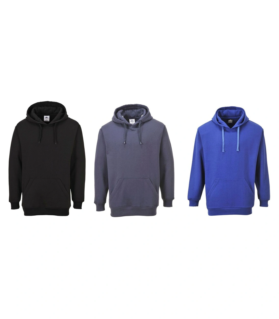 This stylish and practical hooded sweatshirt has a soft brushed inner lining for extra comfort. The polyester content ensures excellent durability. Design features include a large kangaroo pocket and self lined hood.