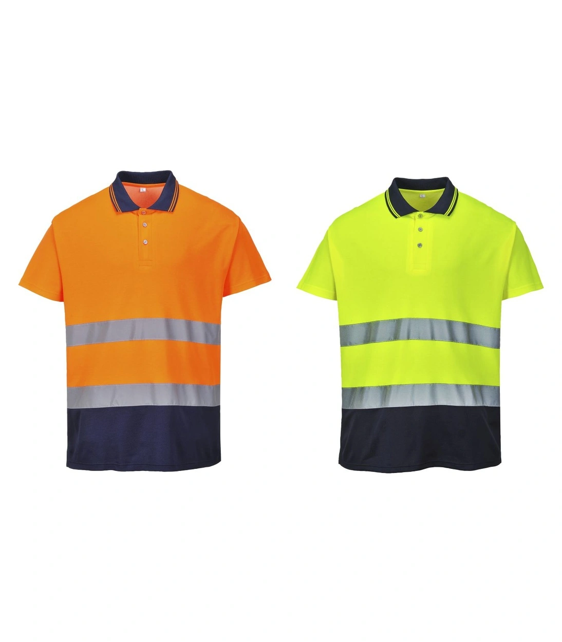 Fabric: 55% Cotton, 45% Polyester, Knit Features: • CE certified Description: The extremely popular S171 polo has been reconstructed to deliver a classic two tone Cotton Comfort polo providing the same level of breathability, visibility and comfort with extra style Sizes small – 3XL in orange/navy. yellow/navy