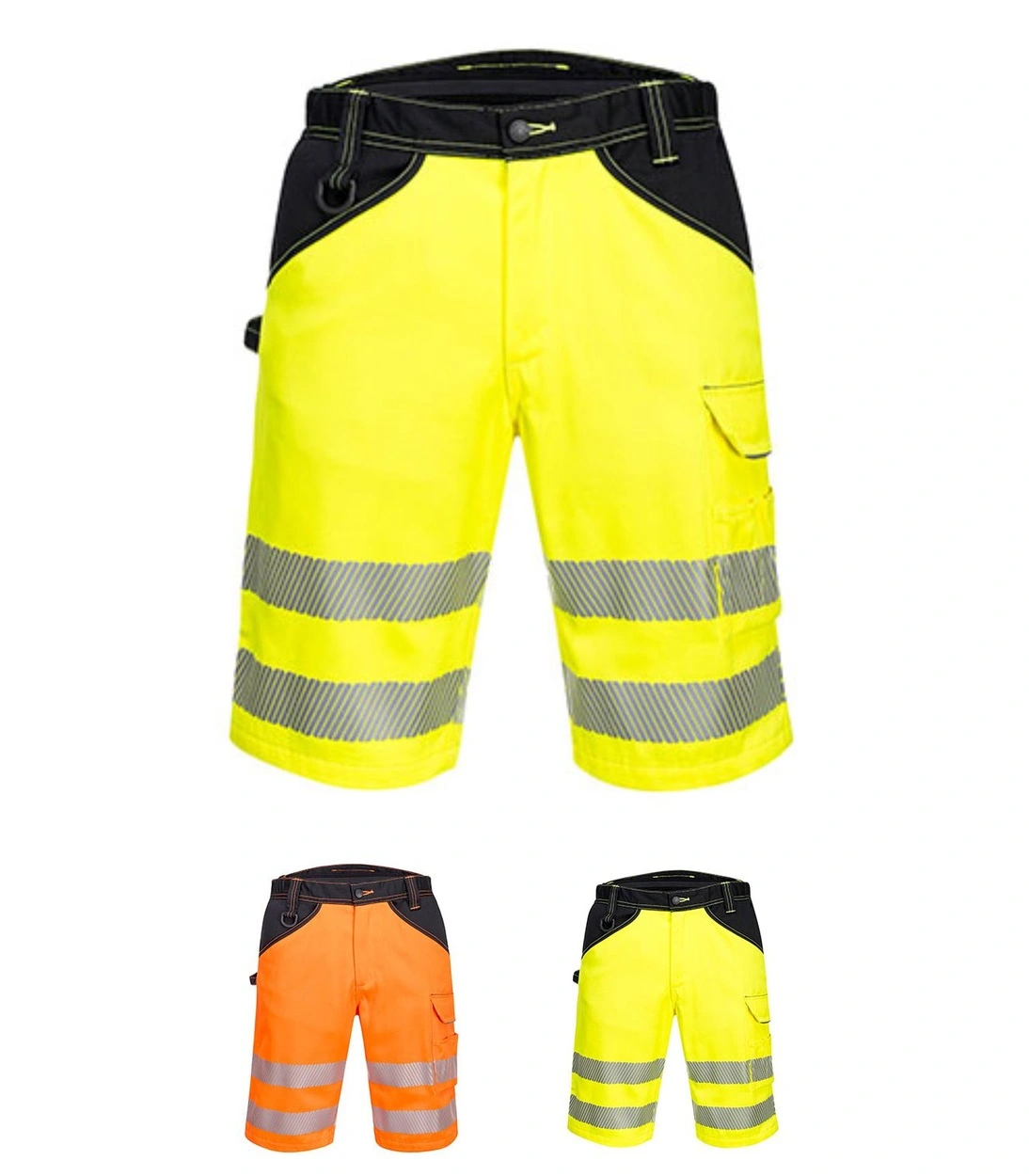 Stylish and dynamic, the PW3 Hi-Vis Shorts feature a modern fit for superb working comfort. Numerous pockets including a rule pocket and an easy access thigh pocket provide excellent personal security. Premium features include HiVisTex Pro reflective tape, crotch gusset, hammer loop and reinforced panels in high wear areas for maximum durability.