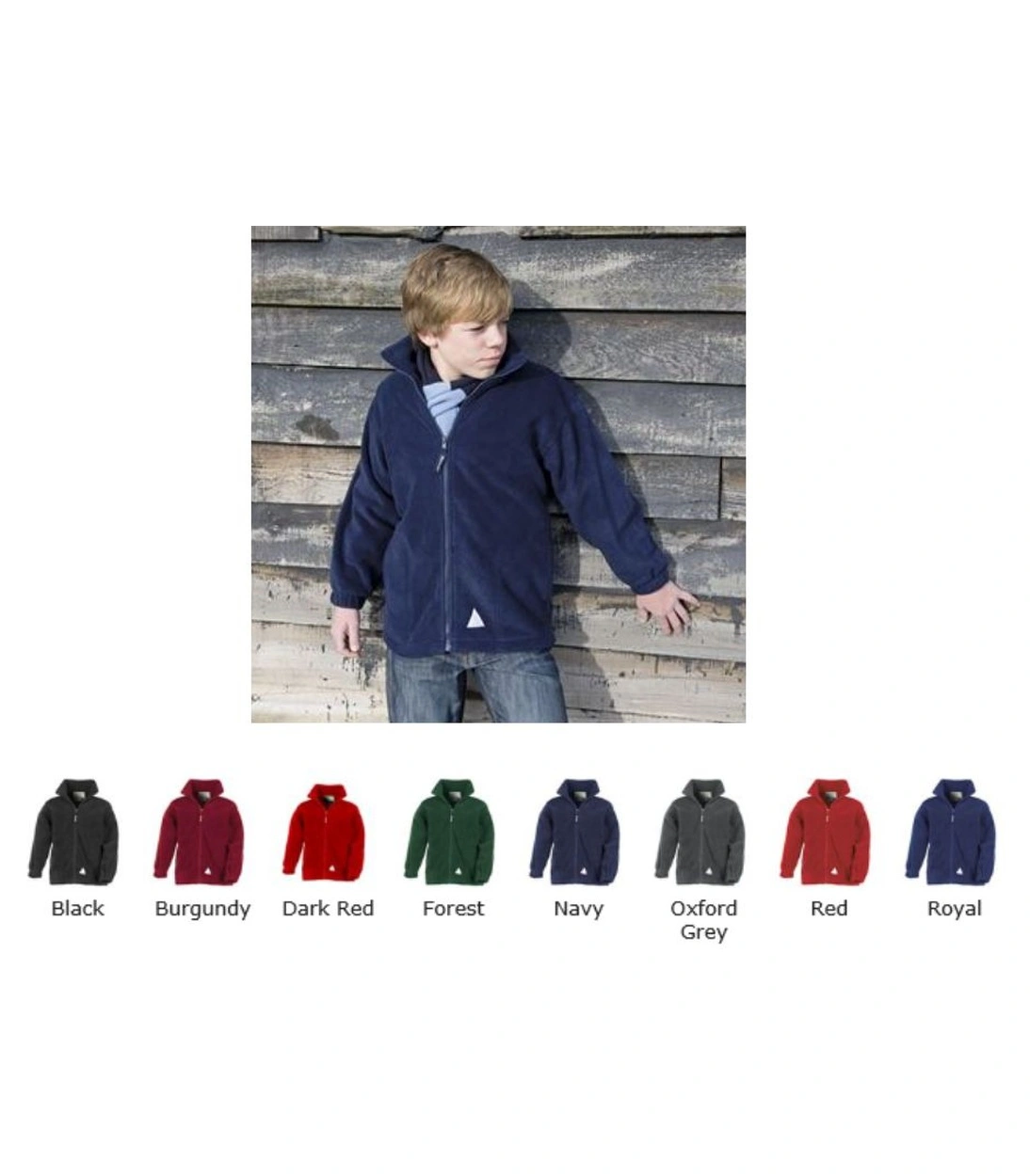 100% polyester 330gsm fleece, elasticated cuffs, adjustable shock cord, 3M reflective safety triangle on front and back, available in black, burgundy, forest, navy, oxford, red, royal in XXS(3/4 years), XS(4/6 years), S(6/8 years), M(9/10 years), L(10/12 years), XL(12/14 years)
