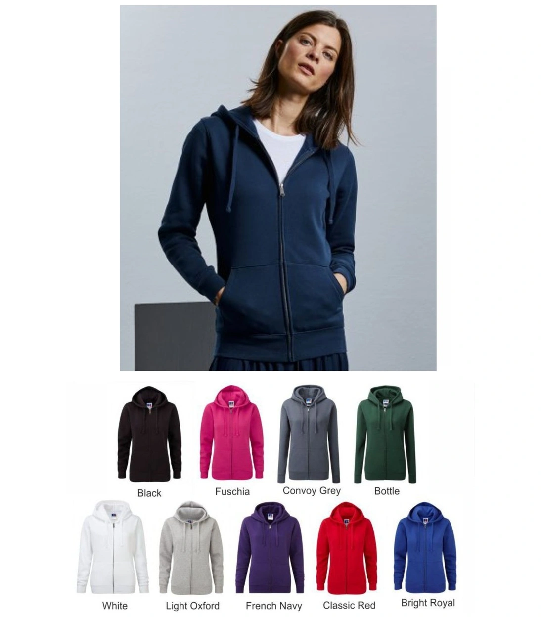 Colours black, bright royal, classic red, French navy, fuschia, Light Oxford