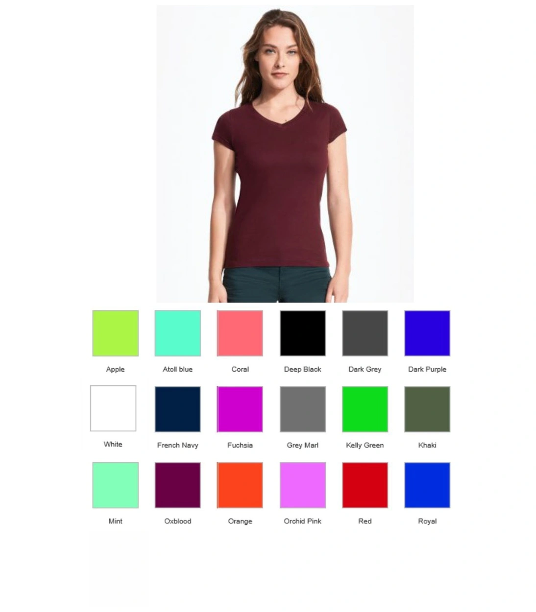 • Colours deep black, white, french navy, royal, atoll blue, dark purple, kelly green, mint, apple green, dark grey, khaki, grey marl, oxblood, red, fuschia, orchid pink, orange, coral