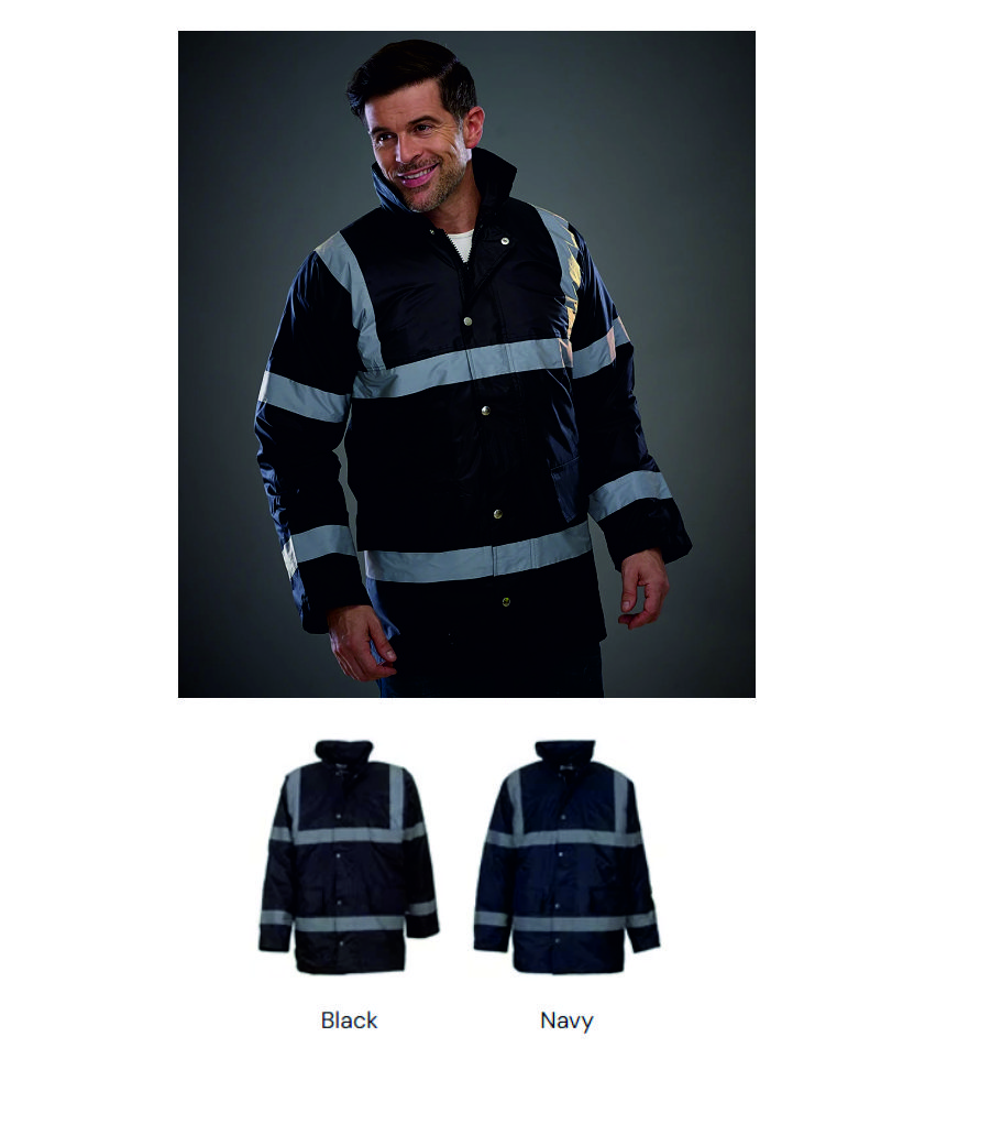 - Two reflective tape bands around the body, sleeves and one over each shoulder.
